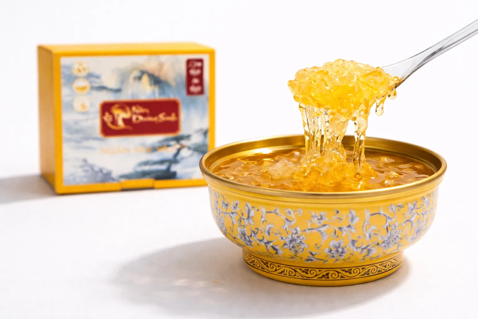 Thành phần chính: Ngân nhĩ vàng thượng hạng, đường phèn thanh khiết, nước tinh lọc.